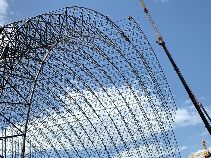 (2)网架加工前应对现场尺寸进行复测,确认无误后方可进行加工、安装;网架制作、运输、安装应遵守《空间网格结构技术规程》JGJ7-2010、《钢网架海西螺栓球节点》JG/T 10-2009、《钢网架海西螺栓球节点用高强度螺栓》 GB/T 16939-2016、《海西钢结构海西工程海西施工规范》 GB50755-2012、《海西钢结构海西工程海西施工质量验收标准》 GB50205-2020。